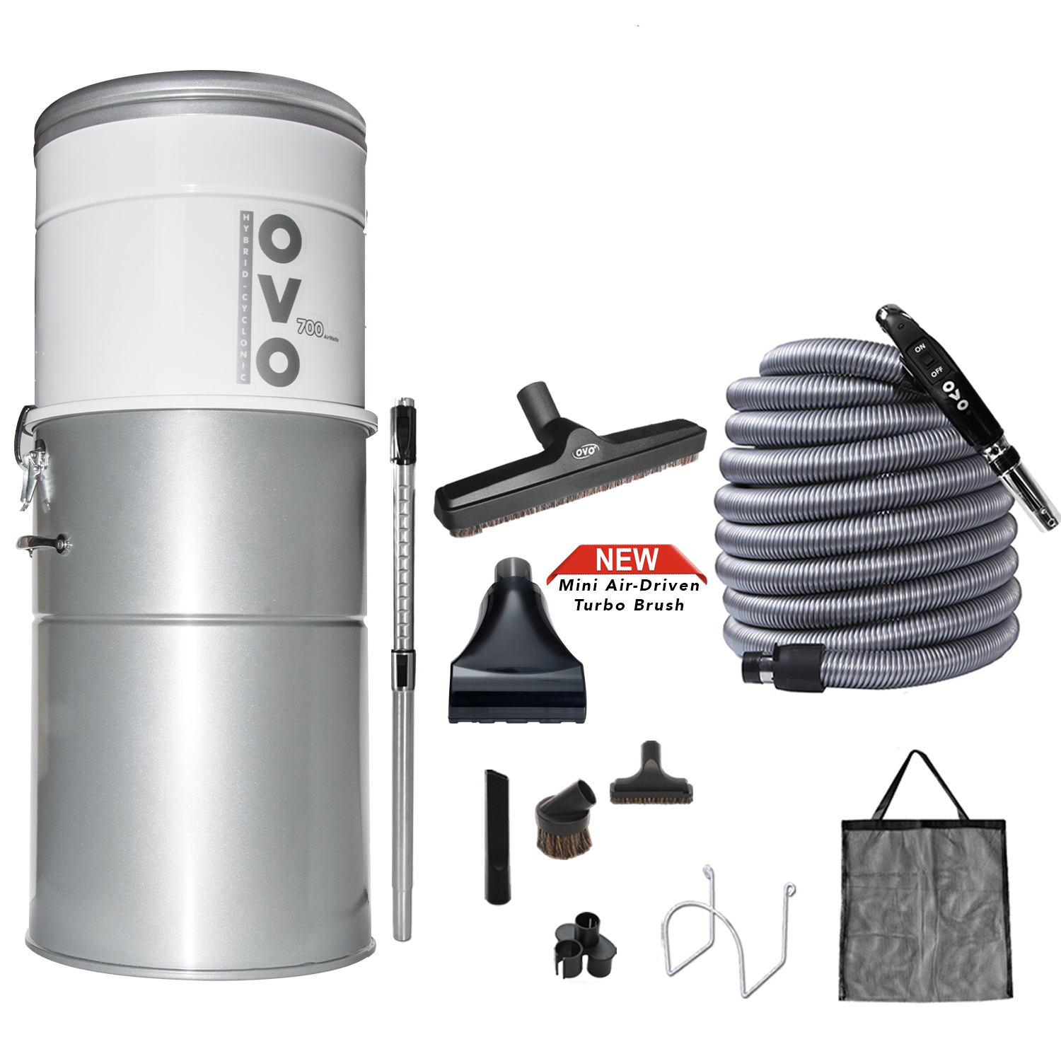 - Support chromé pour boyau et sac de rangement pour accessoires